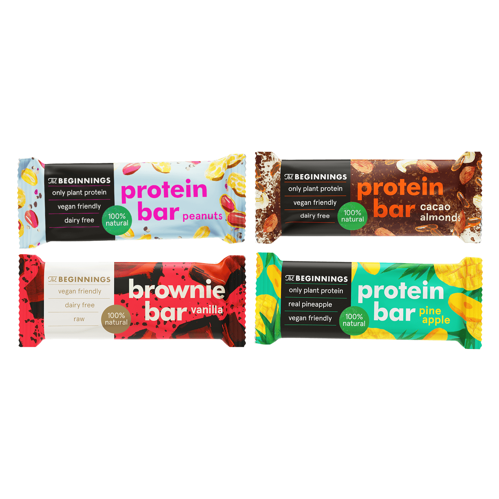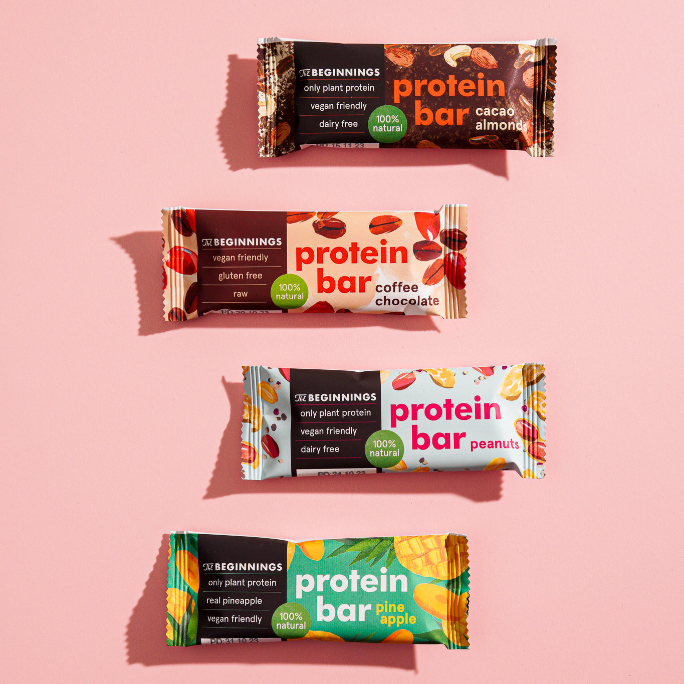 100% natural bars made from berries, fruits and nuts. No gluten, no soy, no fillers, no added sugar, no junk. The nature already took care of everything that needs to be in it. We've just chopped ingredients and packed it in a convenient energy bar to get you through the day. If we ever topped our bars with anything, it's the veggie protein — a collection of flavours for those regularly hitting the gym.