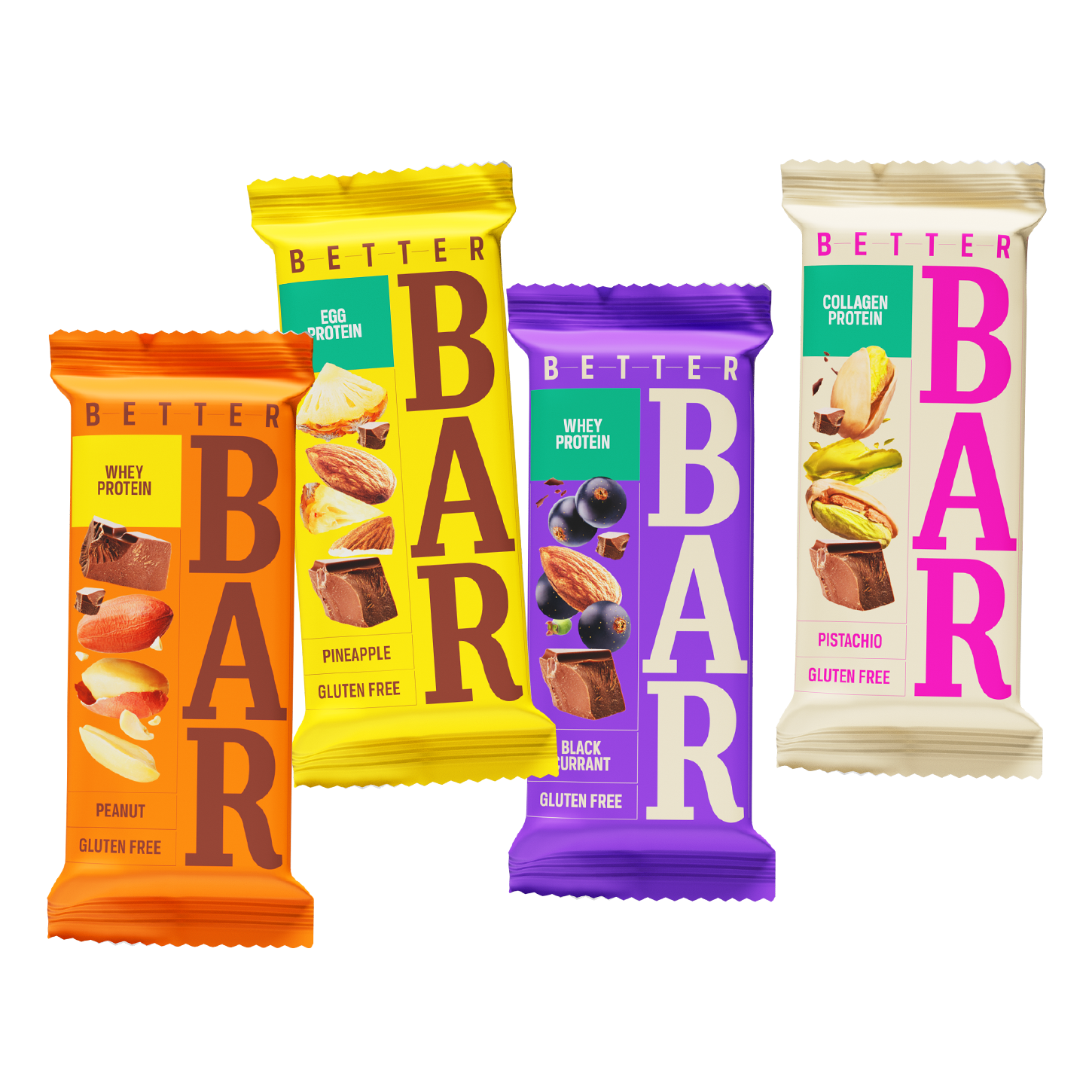 100% natural bars made from berries, fruits and nuts. No gluten, no soy, no fillers, no added sugar, no junk. The nature already took care of everything that needs to be in it. We've just chopped ingredients and packed it in a convenient energy bar to get you through the day. If we ever topped our bars with anything, it's the veggie protein — a collection of flavours for those regularly hitting the gym.