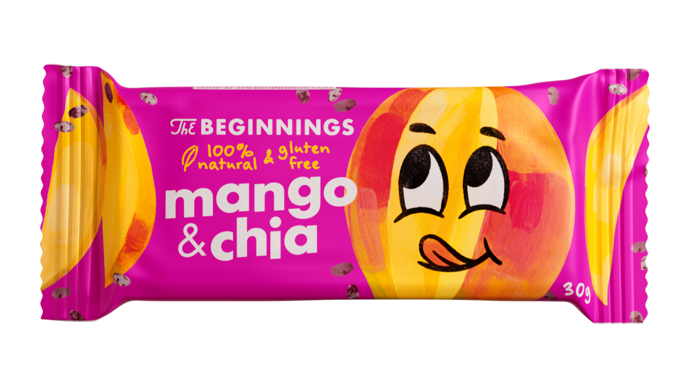 Ingredients: dates, mango dried 22%, sprouted buckwheat, oats gluten free, shredded coconut, passion fruit juice concentrate, pineapple juice concentrate, chia seeds, cocoa butter, sea salt.
