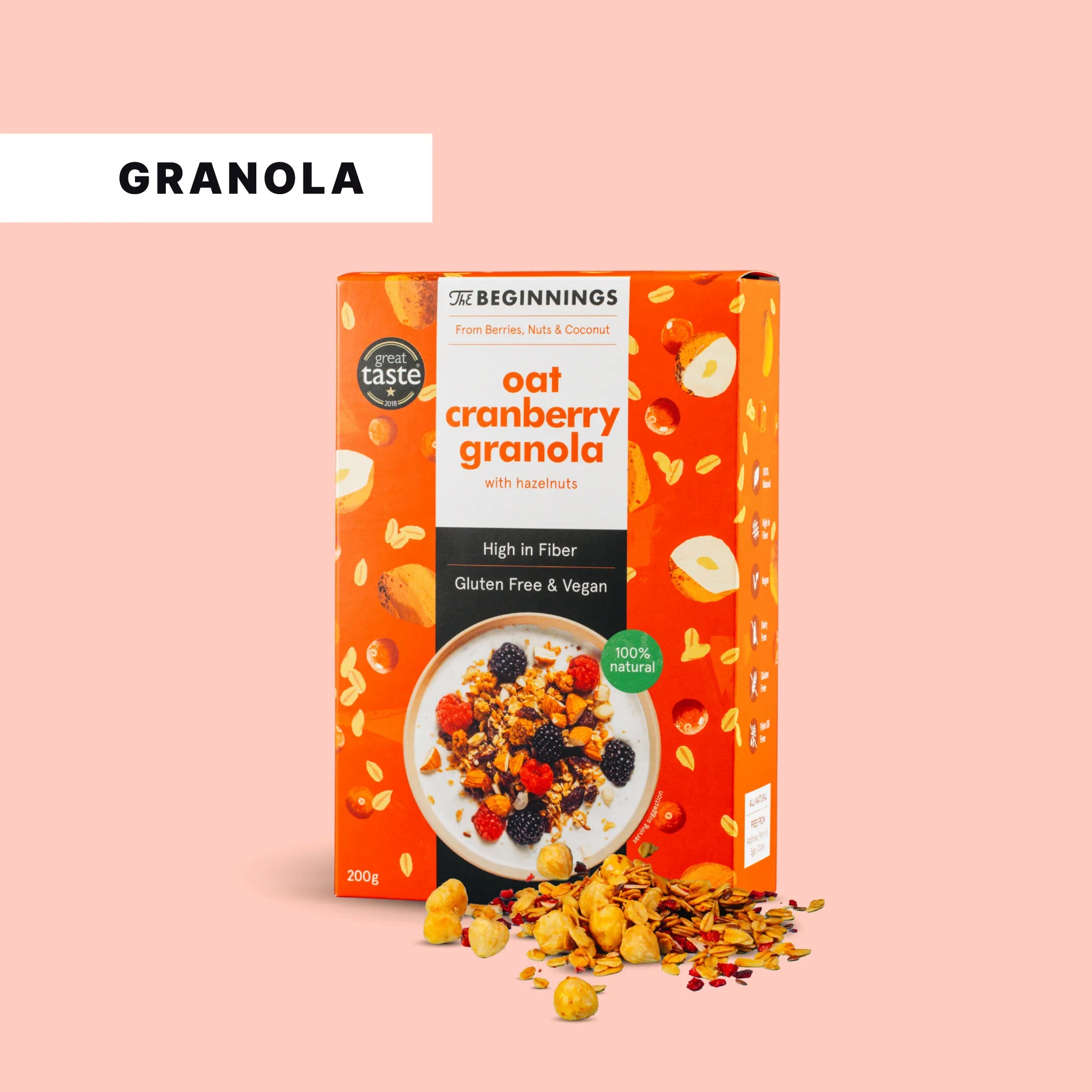 - Oat Cranberry Granola: Gluten-free oats and tart cranberries. Your morning yogurt just got an upgrade.