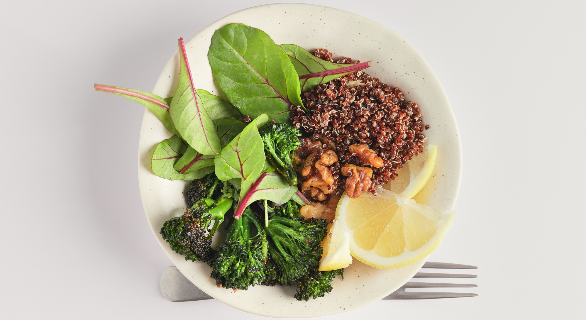 Quinoa and chickpeas are plant-based protein powerhouses. Toss them with colorful veggies and a drizzle of olive oil for a vibrant, protein-rich meal.