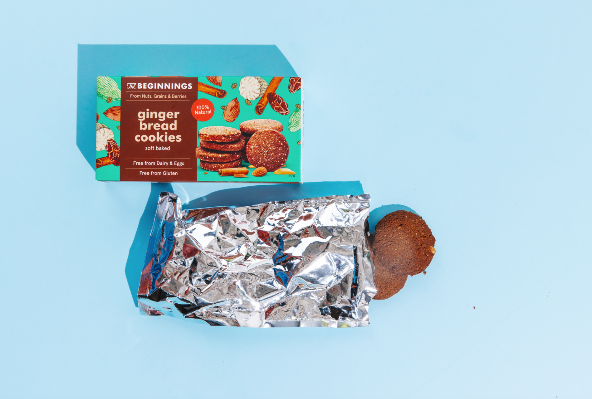 Ingredients: almonds 21%, coconut milk powder, coconut oil, molasses syrup, coconut sugar, buckwheat flour, rice flour, date syrup, cinnamon, coriander, puffed amaranth, ginger, black pepper, cloves, cardamom, nutmeg, baking powder, sea salt.
