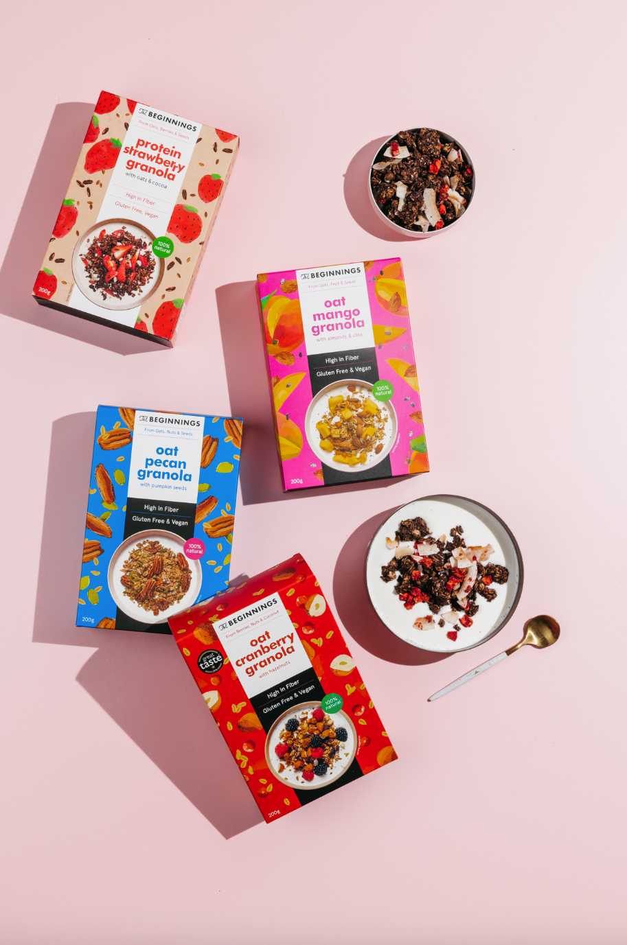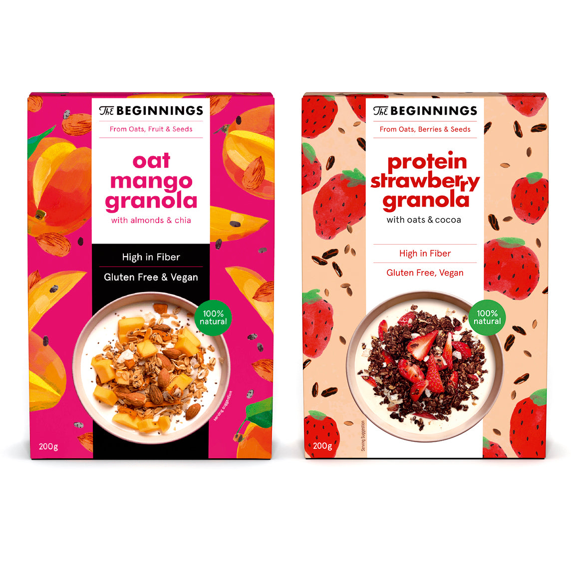 There is no better introduction to The Beginnings Granola Set. Tropical Mango Granola and Strawberries Granola perfectly complement each other. This granola is ideal with seasonal fruit, milk, yogurt, or as an addition to desserts.